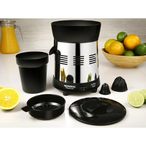 Con el extractor de jugo Turbo 250W Premium de Mondial, tendrá jugo de naranja y limón natural en cualquier momento del día. Jugos más frescos y saludables para tu familia. Con 250 W de potencia, 2 castañas, una para limón y otra naranja, frasco de 1,25 litros, colador, bivolt se puede usar en 127 V o 220 V, diseño de acero inoxidable súper moderno, motor con rodamiento de doble blindaje y protección térmica que brinda mayor durabilidad, harás jugos más saludables todos los días.